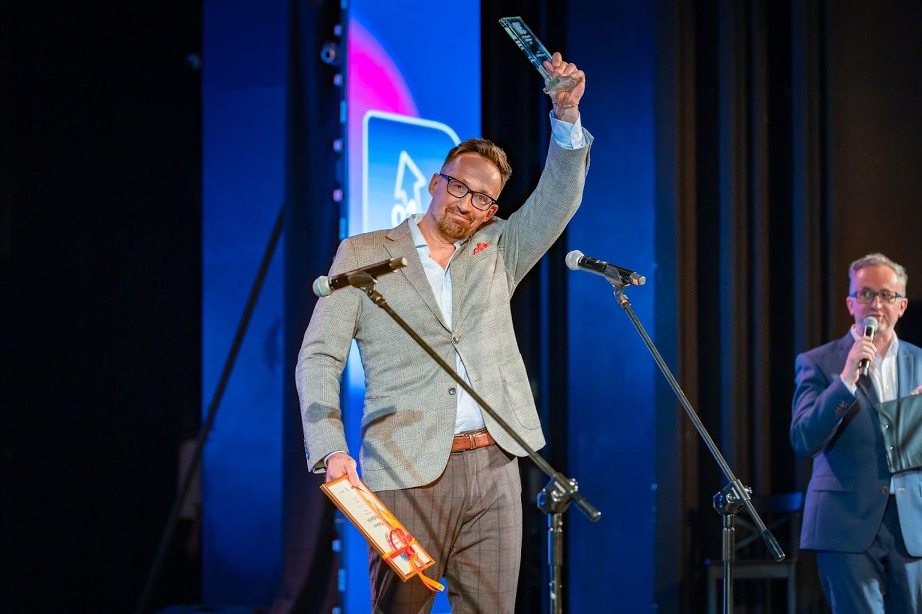 Laureaci 30 Kreatywnych Wrocławia: od lewej Filip Heliasz (2025), twórca profilu na Facebooku „Wrocław - inwestycje budowlane", obok pisarka Joanna Kuciel-Frydryszak (2019)