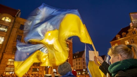 Flaga Ukrainy i hymn przed wrocławskim Ratuszem. Jest apel o pokój