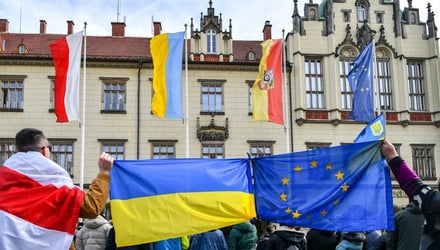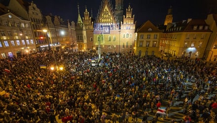 Wrocław solidarny z Ukrainą. Manifestacja pod Pręgierzem