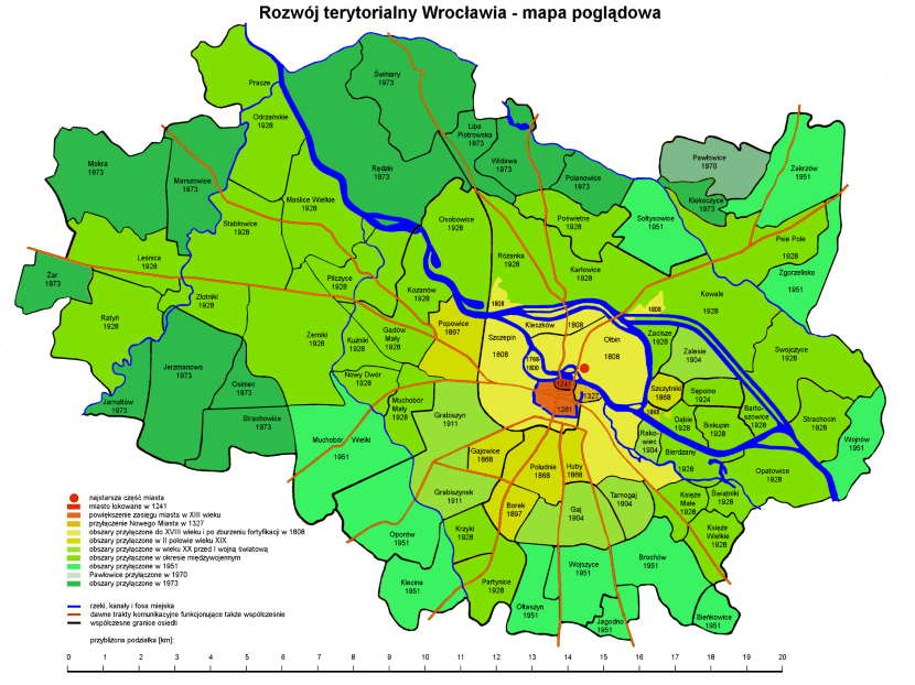 Uchwałę w sprawie podziału miasta na osiedla Rada Miejska Wrocławia przyjęła 20 marca 1991 r. Nasze miasto jako pierwsze w Polsce zadecydowało o utworzeniu gminnych jednostek pomocniczych. Podstawą do nowego podziału administracyjnego stała się ustawa o samorządzie terytorialnym z 1990 r.
