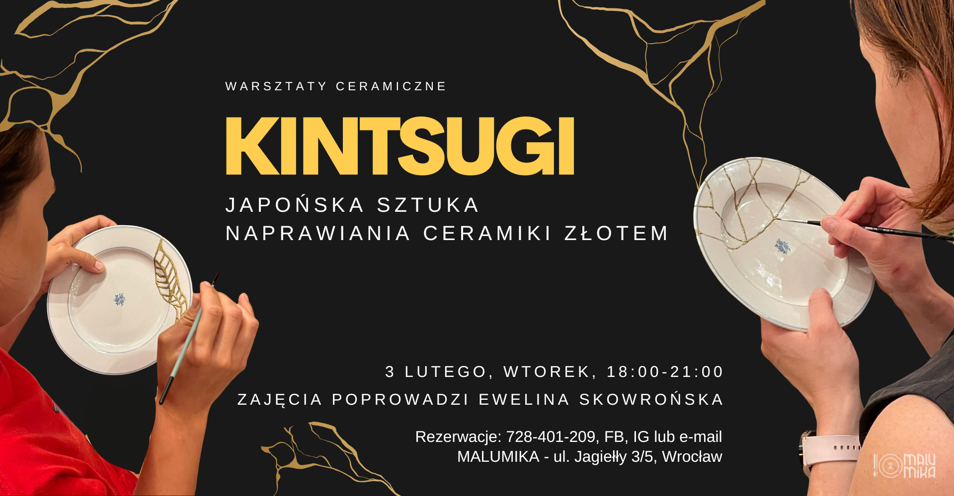Podczas warsztatów poznasz ducha i tradycję Kintsugi, sztuki powstałej w XV wieku w Japonii i praktykowanej do dziś przez japońskich mistrzów.