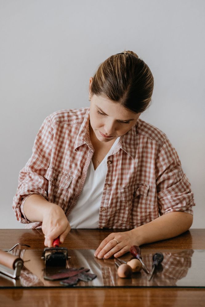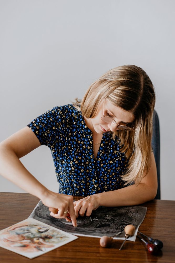 Podczas spotkania nauczysz się nanosić własny wzór na linoleum, rzeźbić dłutem oraz odbijać ilustracje w technice druku wypukłego.