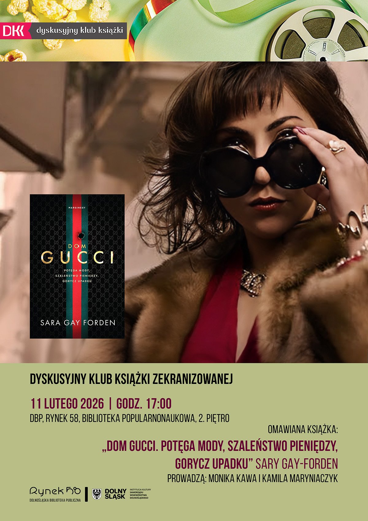 Podczas najbliższego spotkania DKK Zekranizowanej omówimy książkę „Dom Gucci” autorstwa Sary Gay Forden, której historia została przeniesiona na ekran.