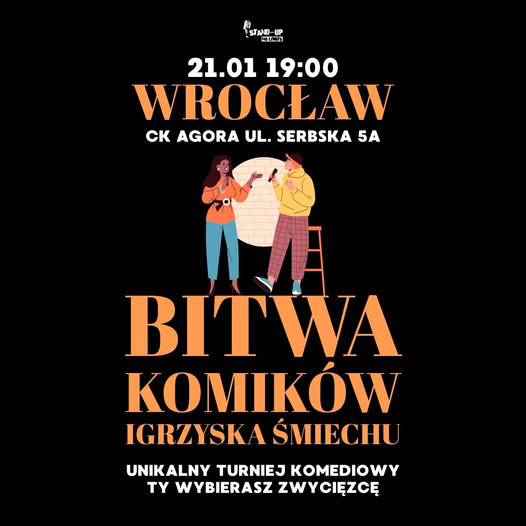 Już 21 stycznia 2026 r. o godz. 19:00 w CK Agora odbędzie się Bitwa Komików – legendarne show komediowe, które podbiło serca publiczności w całej Polsce!
