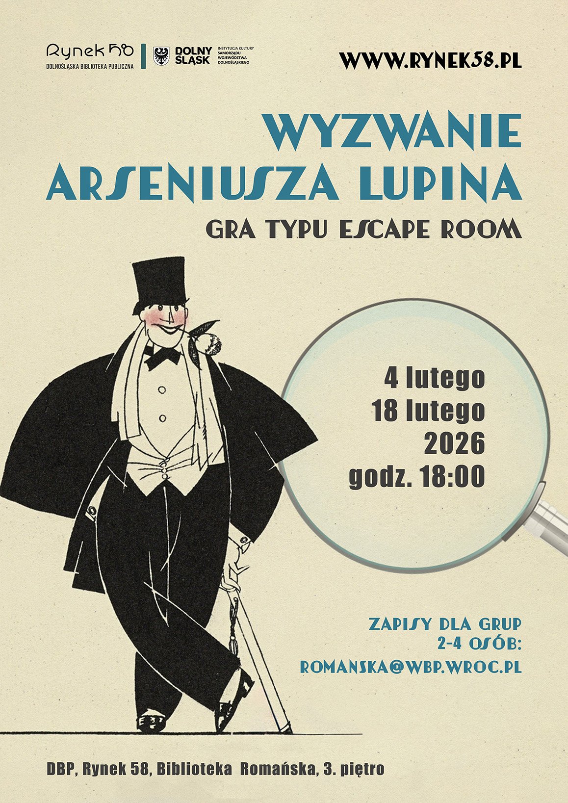 Żeby zgłosić się do gry, prosimy wysłać maila na adres romanska@wbp.wroc.pl najpóźniej w dniu poprzedzającym wydarzenie. W ramach potwierdzenia zapisu otrzymają Państwo odpowiedź na wiadomość.