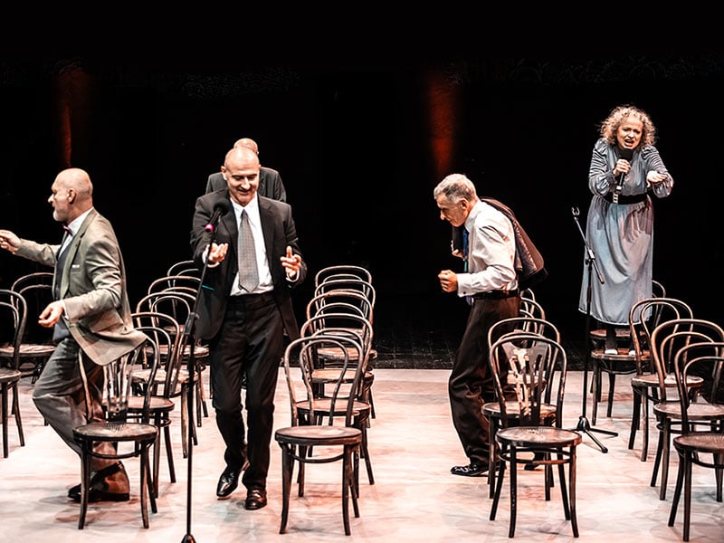 To jest zabawny spektakl o profesorze, który spóźnia się na bankiet. Tokarczuk pokazuje, że wystarczy mały przypadek, aby rzeczy oswojone ruszyły z miejsca i pokazały swoją inną stronę.
