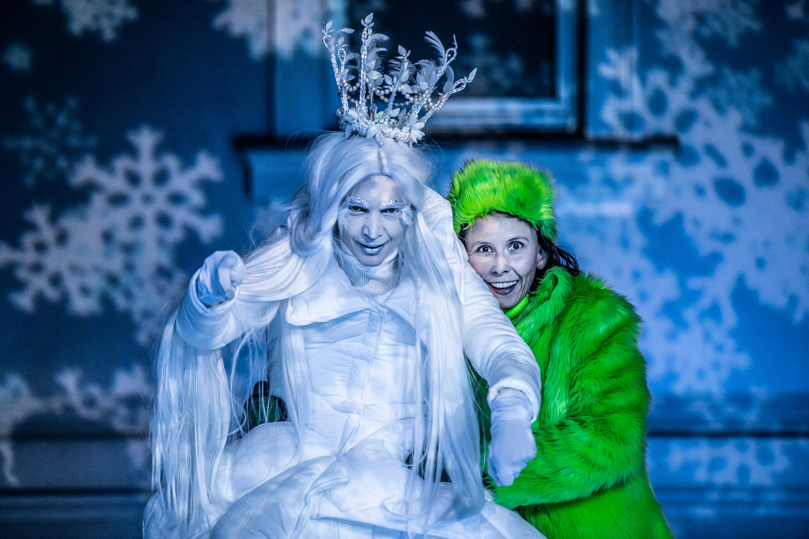 Oczywiście, nie zabraknie Królowej Śniegu, która pragnie rządzić wiecznie i wszystko zamrażać. W spektaklu próbuje się ją uwolnić z przekleństwa chęci władzy, wypuszczając ją do ludzi.