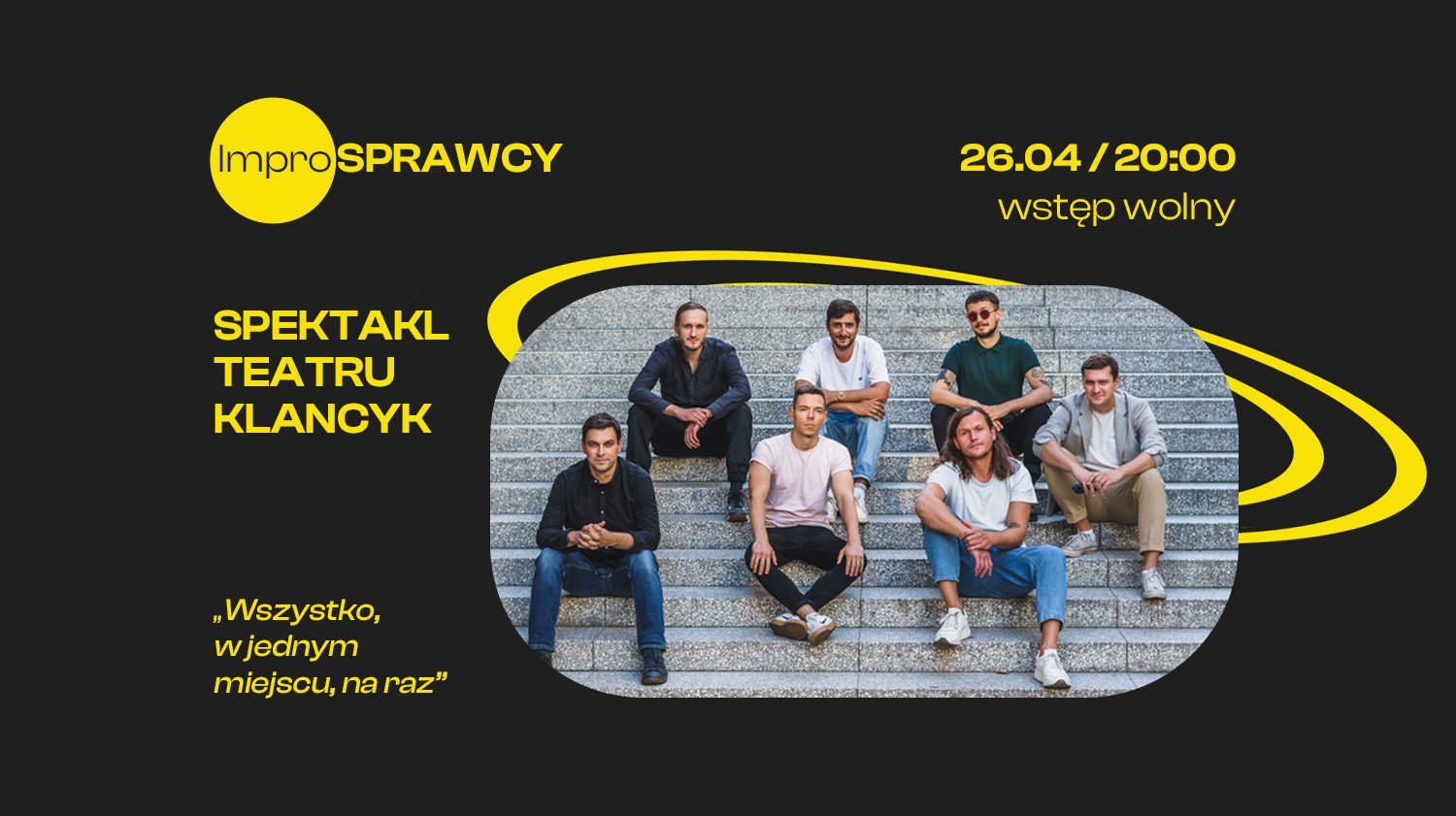 Na scenie pojawi się jeden z najbardziej rozpoznawalnych teatrów improwizowanych w Polsce, który od blisko dwóch dekad tworzy spektakle powstające na żywo – bez scenariusza, w bezpośredniej relacji z publicznością. Występ Klancyka to dynamiczne, nieprzewidywalne widowisko, w którym każda scena rodzi się tu i teraz, inspirowana sugestiami widzów i energią chwili.